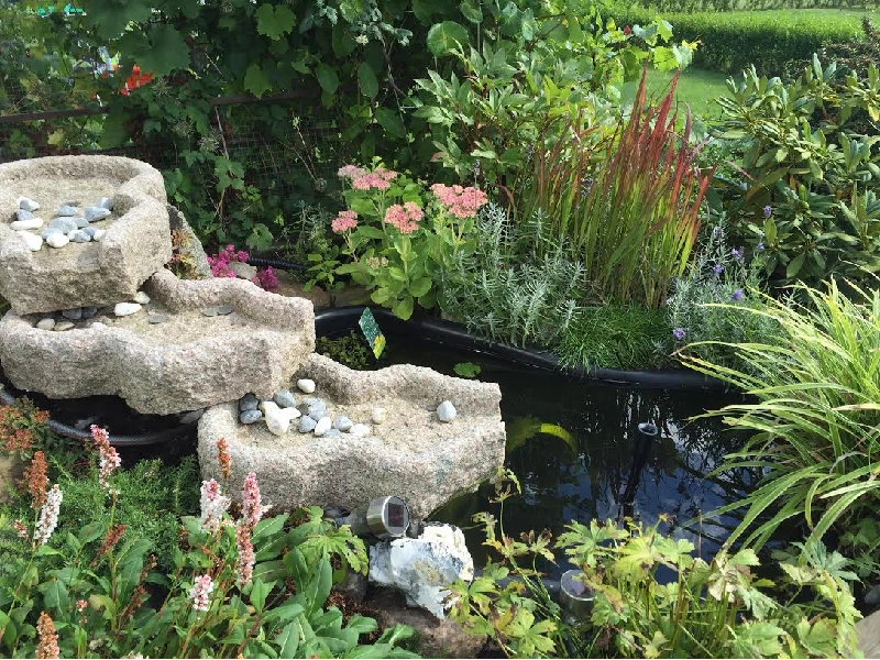 Utöver trädgårdsbelysning jobbar vi även med vatten i trädgårdar. Dammar, vattenfall och porlande vatten inger en känsla av ro hos oss, och bidrar på samma sätt som vindens sus i träden och fågelkvitter till trivselfaktorn. Här kan det även vara vackert att kombinera trädgårdsbelysning och vatten, för att skapa effekter. Föreställ dig till exempel en damm eller ett vattenfall kvällstid som lyses upp underifrån från sidorna och skimrar i mörkret.